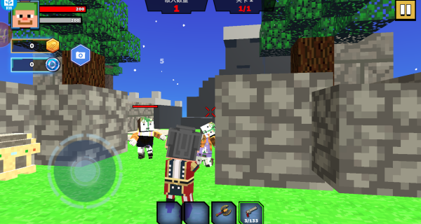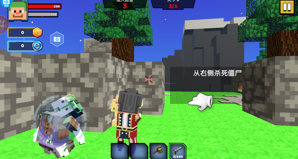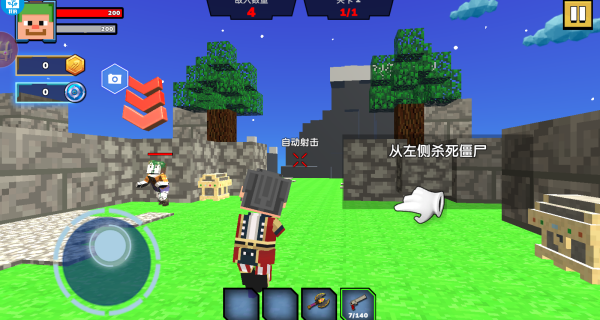 2、根据手指的提示,利用虚拟摇杆控制角色从左侧杀死僵尸。