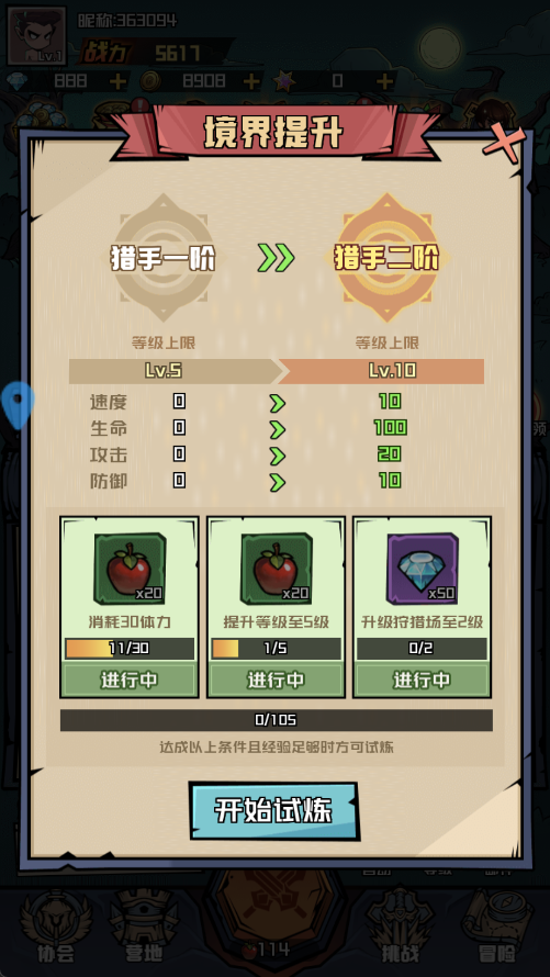 4、当角色达到一定实力后,即可解锁“进阶试炼”,挑战高难度关卡,赢取丰厚奖励与稀有道具。