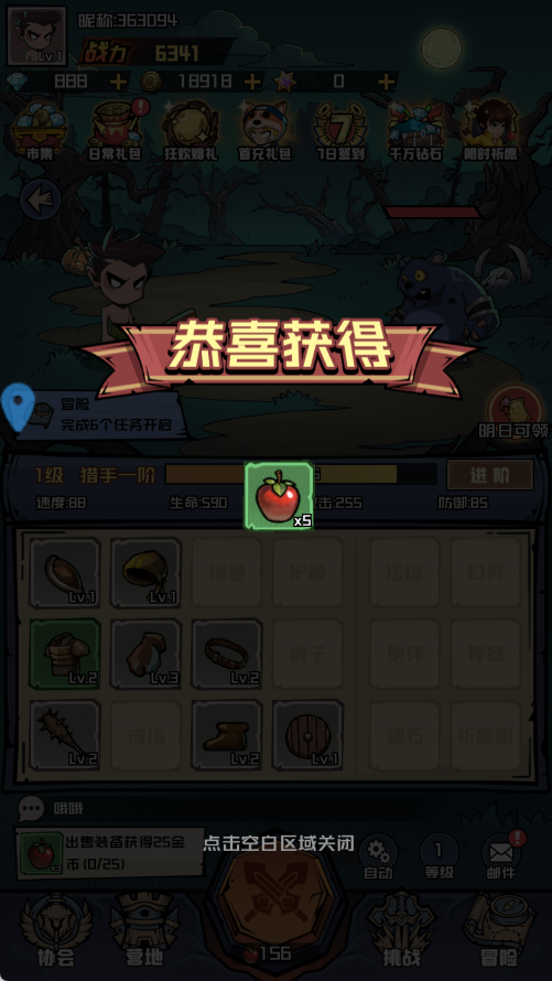 6、完成每日任务不仅能获得经验奖励,还能在等级提升后开启“挑战”——这是高收益副本,内含顶级装备与神器掉落,是冲刺战力的关键途径。