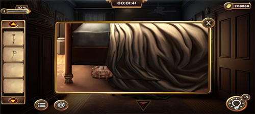 8、想要打开卧室下方的密码,就需要床上右上方的画框中获得六位数密码,通过这些线索就能打开门了。