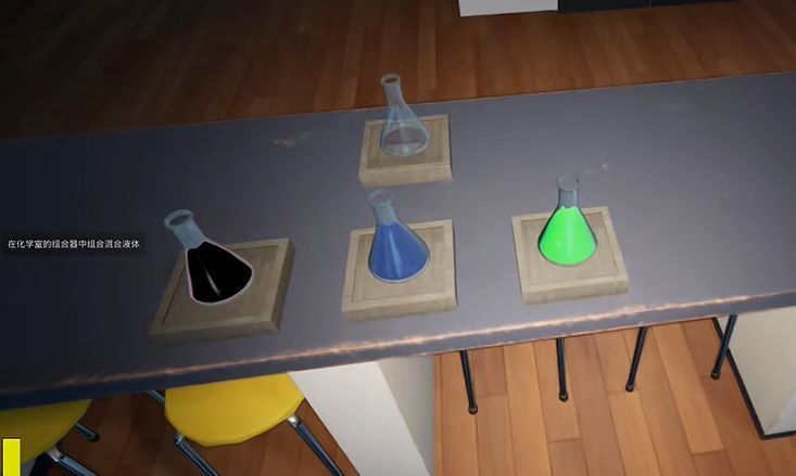 化学试剂瓶排列顺序对应密码锁数字(如红→蓝→绿对应“7-2-5”)。