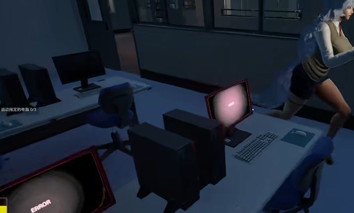 通过潜行躲避芙蕾雅的追踪,利用环境掩体(如课桌、储物柜)掩护行动。