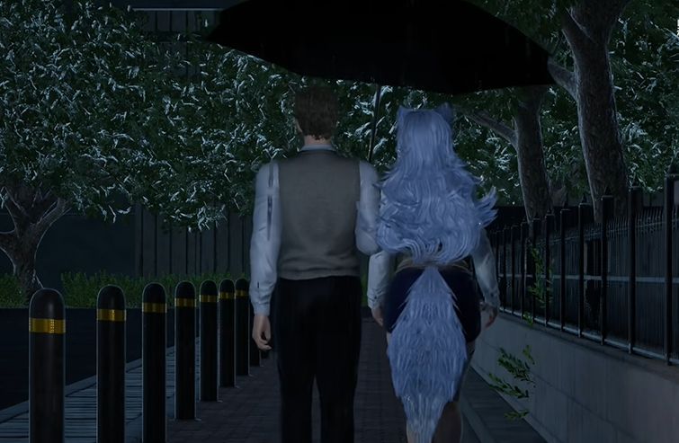 男主彻底接受了芙蕾雅,这时外面下起了雨,和芙蕾雅一起打伞回家