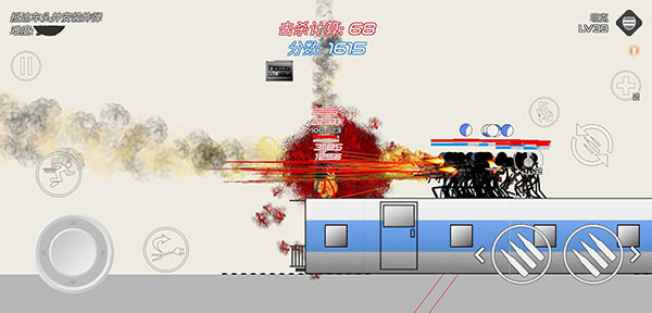 在玩家屏幕的左边是控制人物左右移动,连续点击两下还会进行扑越躲避子弹,并且射击方向是固定的,就需要你不断的移动才能快速的打击到敌人,无法自由转换,点左边就朝左边打,点右边就朝右边打,同时还有左边还有加速、下蹲按键,可以根据情况进行使用。右边的换弹和换枪需要合理的搭配,防止战斗中换弹