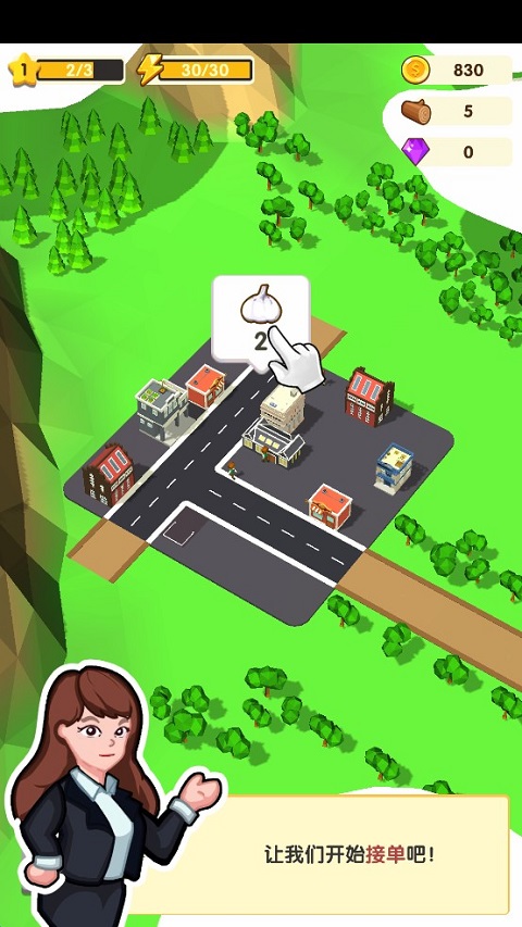4、路修好后,开始接单!如图所示,在城市区域点击“气泡”可以选中订单,待你选中订单后会自动选择城市可用车辆进行运输。