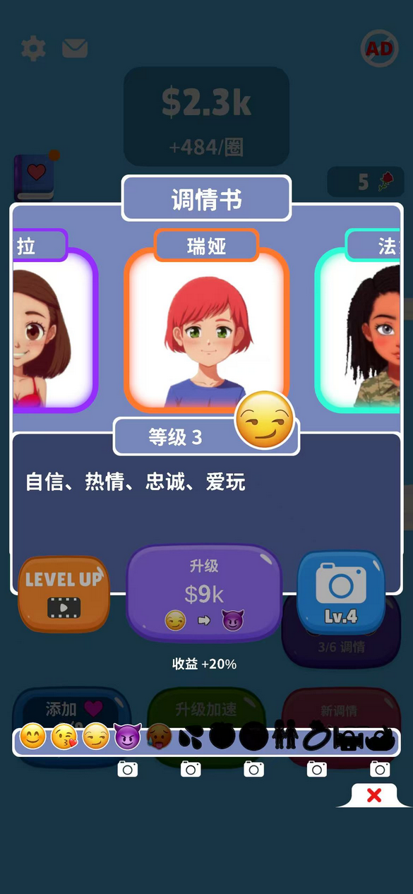 欢迎来到你的梦想冒险!收集爱心来赚取金钱和约会卡,解锁自拍,与拥有独特个性、风格和惊喜的可爱女孩建立特别的羁绊。不管她们是害羞、调皮、有野心,还是神秘,每个女孩都有自己的故事,而你的任务就是让她们笑出来!