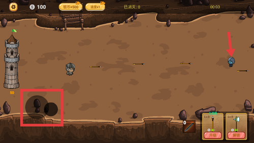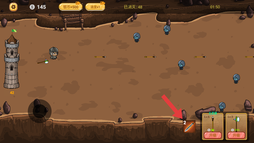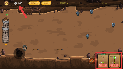 3、消灭敌人会获得银币奖励,可立即用于红色方框内的武器进行升级或解锁更强大的防御塔类型。