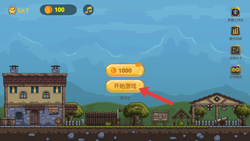1、在主界面点击开始游戏,正式进入第一关卡的激烈战斗场景,准备迎接敌人的第一波进攻。