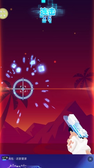 1、拖动枪支左右移动,瞄准下落的物品,击碎它完成节奏挑战。