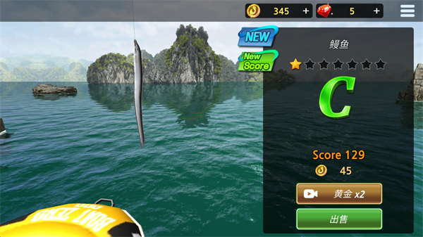5、当鱼的血量为零后就可以钓到,钓到鱼后可以选择出售来获得金币。