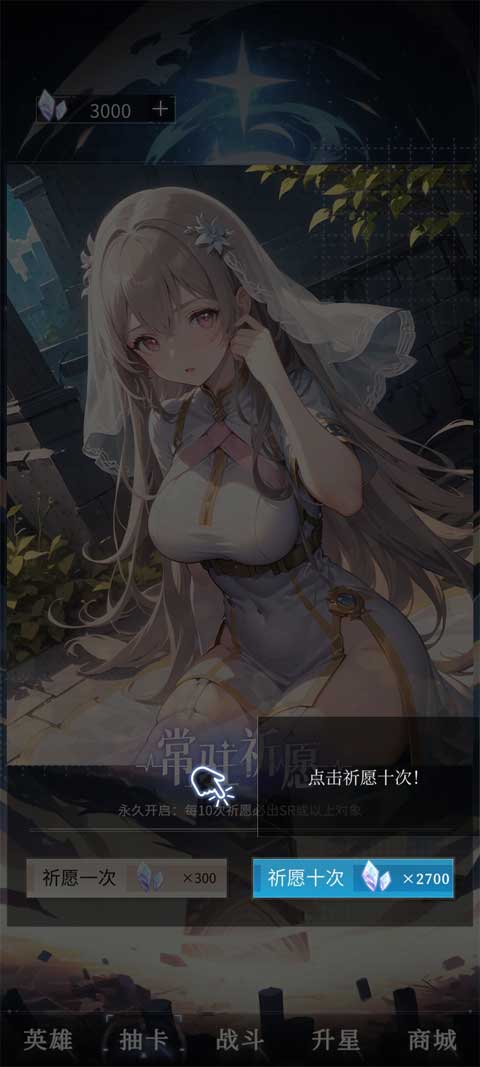 游戏在开局就赠送玩家3000个钻石,让您体验祈愿十次。