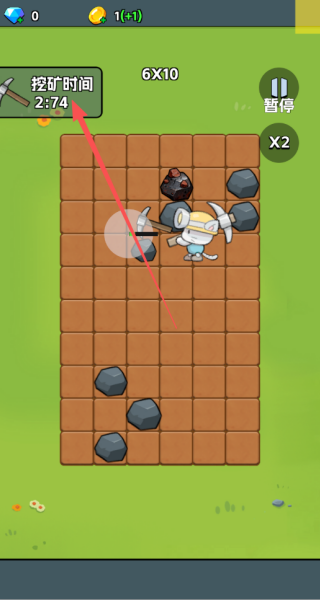 1、直接点击着角色进入到格子中,开启你的挖矿的挑战和操作吧。