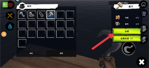7、获得资源就可以建造锤子了,有了锤子玩家才可以矿建木筏、建造各种生活工具