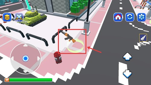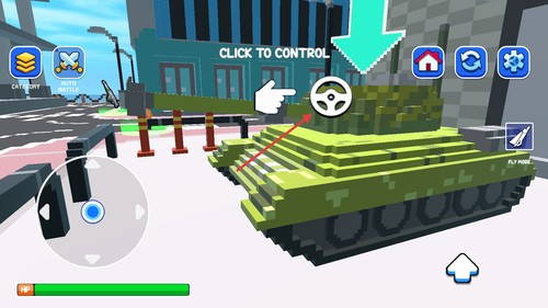 2、在场景中搜寻枪械、火箭筒等武器与坦克等载具,靠近载具点击方向盘按键即可驾驶。