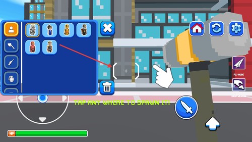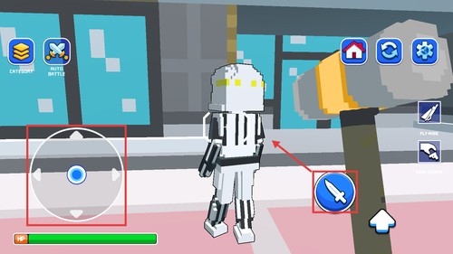 1、点击左侧人物按键将角色拖动至场景,搭配虚拟摇杆控制移动,点击攻击按键发起近战或远程打击。
