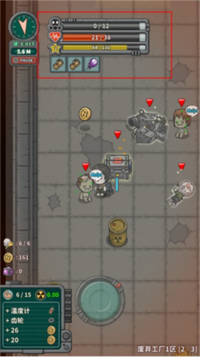 6、探险过程中会释放放射性病毒,以及受到怪物攻击,你需要时刻注意自己的血量。