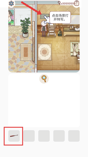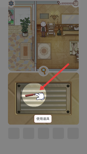 4、将道具栏中的螺丝刀滑动至红箭头位置,破解机关获取钥匙,解锁后续区域并推动案情发展。