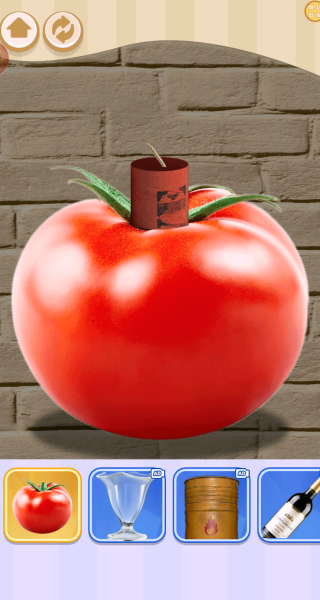 3、之后又选了爆破解压,点燃番茄上方的引线,就会顺便爆炸。
