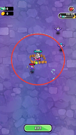 3、当敌人进入武器攻击范围通常为圆形判定区域时会自动受到伤害,右上角实时显示剩余敌人数目便于掌握战局进度。