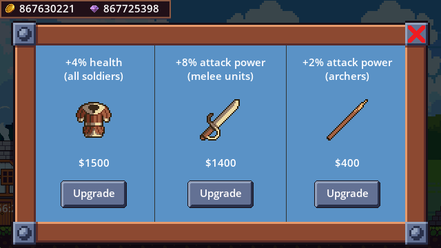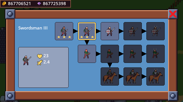 7、可升级的士兵、骑士、弓箭手和快骑兵随时为您服务。