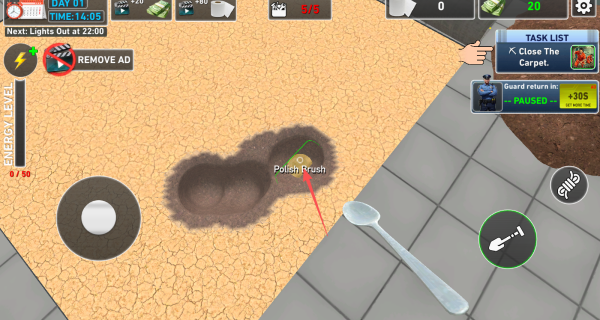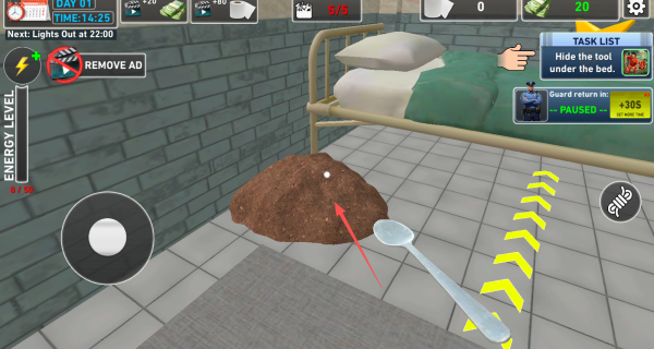 越狱游戏——挖掘、生存、逃脱!你被困在戒备森严的监狱之一。狱警时刻巡逻,监视着你在监狱越狱中的一举一动。你一无所有……除了藏在床下的一把勺子。你能在监狱越狱游戏中用它变成通往自由的钥匙吗?在监狱越狱游戏中,你的任务简单却危险:在狱警抓住你之前,挖出一条逃生之路!分秒必争——管理好你的工具,清除证据,智胜警察,在监狱越狱游戏中生存下来。