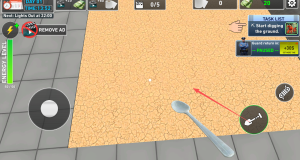 1、仔细观察监狱的布局和守卫的巡逻路线,找准时机,挖掘通向自由的隧道。