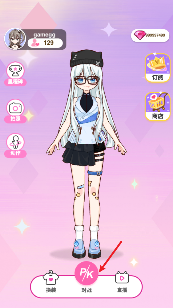 6、回到主界面就能够看到打扮好的形象了,另外还可以去参加PK比赛呢。
