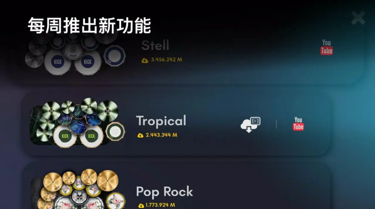 4、各种鼓、钹和其他打击乐器 - 每周推出新套件、课程和循环。