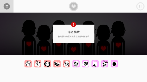3、游戏玩法其实很简单,只需要拖动下面的装饰物到人物身上就可以开始制作音乐;