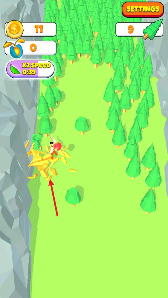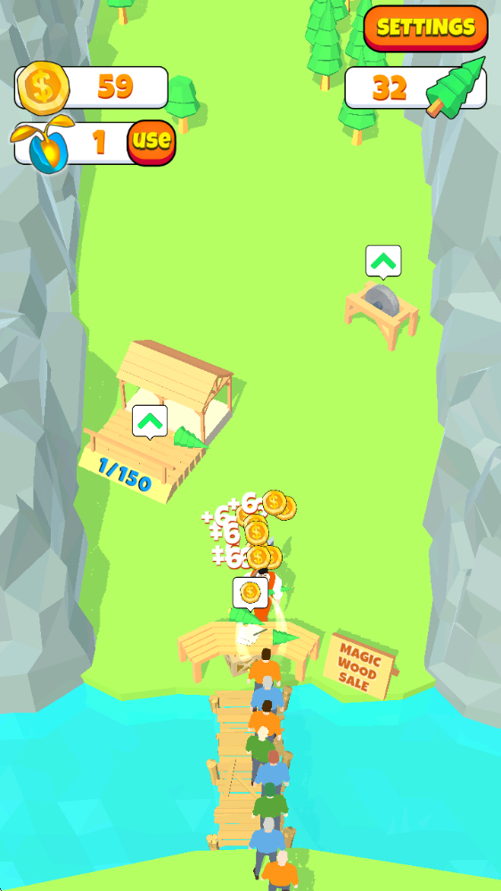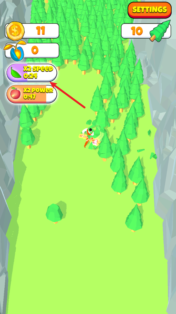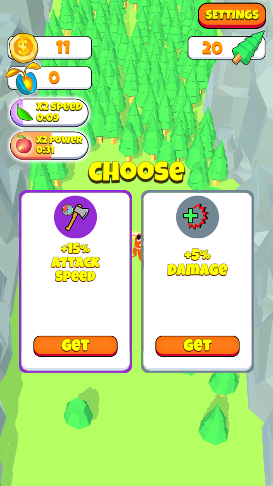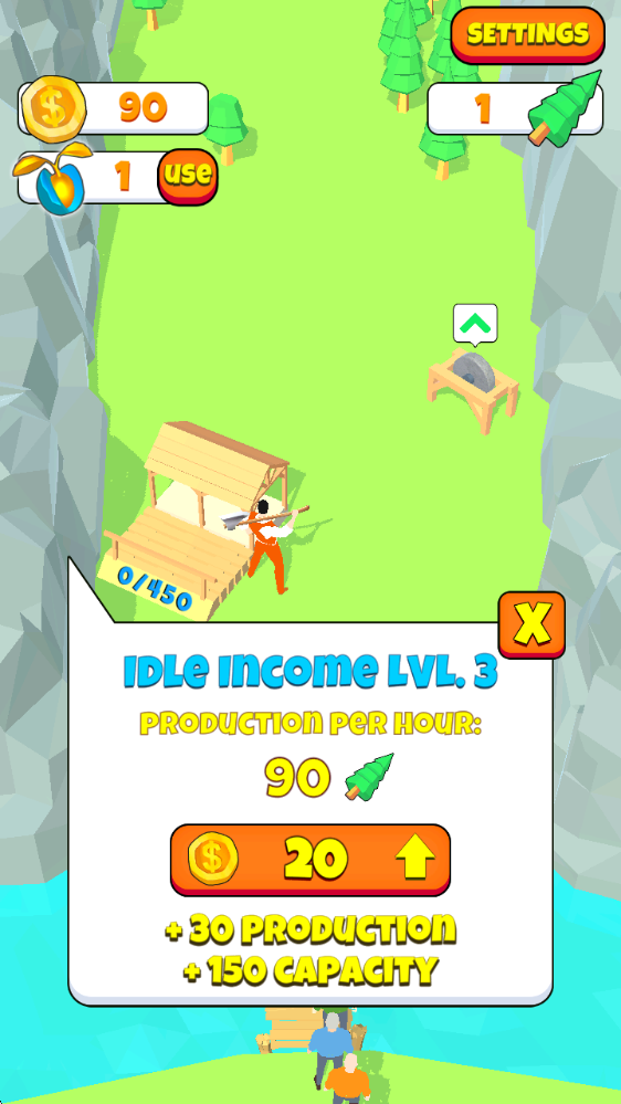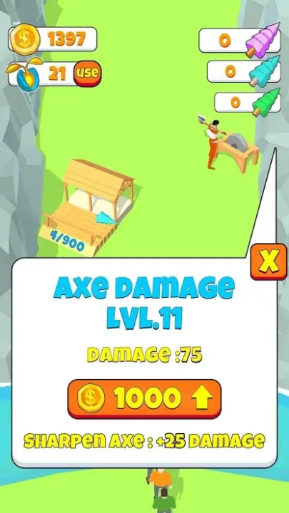 1、砍树,卖树并购买升级道具!