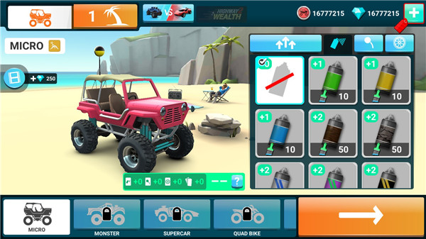 1、进入游戏后我们可以点击右侧升级来给车辆进行性能提升;