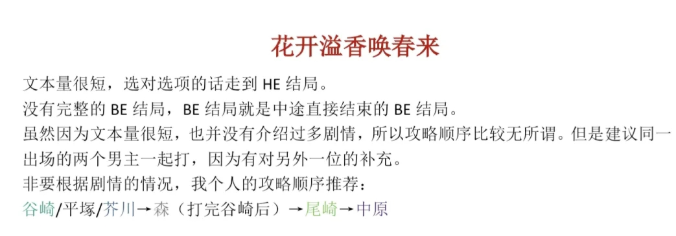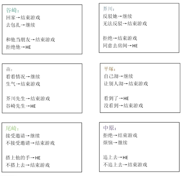 只有选择正确选项才可继续进行游戏,每条路线只有两个选项而且非常简单,选错直接进入中断be(均无CG)