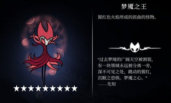 最后就是终极boss战了,不同武器攻击boss会得到不同的结局,骨钉可以得到结局二,梦之钉则可以得到结局三,会出来一个隐藏boss,与其对战。