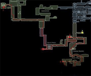 2、【长椅】存档点很重要,它不止是让你存档,你在地城里探索的时,地图不会跟恶魔城一样自己显示新的区域,你要在地图商人NPC那买一张当前区域的空白地图,然后找他老婆另一个NPC买羽毛笔,你在【长椅】存档的时,新探索的区域就会被绘制出来!