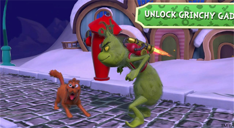 2、解锁格林奇的小玩意一一解决谜题并获得能力!扔雪球、假装圣诞老人、使用拐杖糖套索或使用喷气背包跳跃,这样的例子数不胜数!