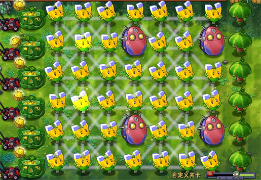 第十列种植地雷,第九列种植黑曜石,其次,尽快的将激光南瓜铺到第八列