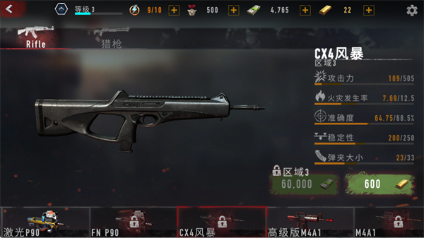攻击力505,火灾发生率12.5,准确度68.5%,稳定性250,弹夹大小33,需60000现金和600金条解锁。