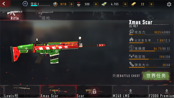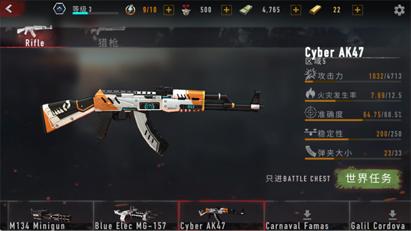 攻击力4713,火灾发生率12.5,准确度68.5%,稳定性250,弹夹大小33,通过世界任务获取。