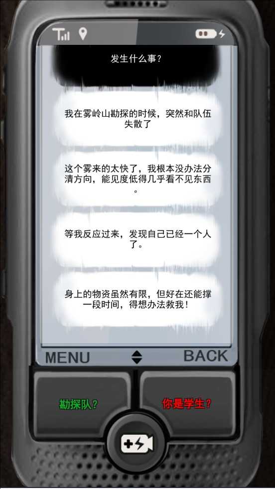 求生信号手机游戏是一款文字对话冒险游戏,玩家化身成为一名关键的无线电接收员,接收各种来源的、充满未知的陌生求救信号,玩家需凭借智慧与冷静,深入到这些由求救信号触发的复杂事件核心。依靠与求救者的紧密对话交流,精准判断形势,努力在每一个千钧一发的紧急情况里力挽狂澜,