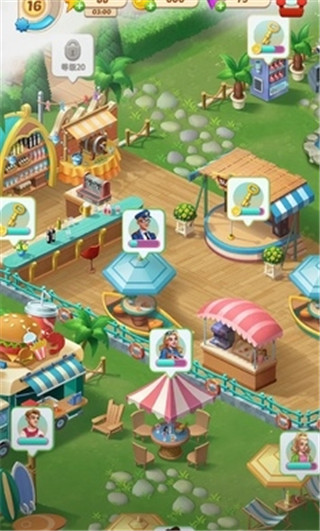 3、玩家通过合并相同工具或道具,解锁更高级的修复工具,逐步修复度假岛的各个场景。