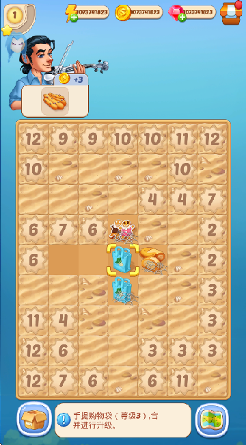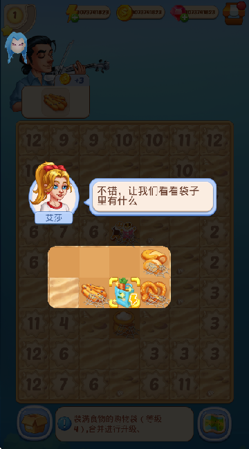 2、点击袋子会出现新物品,合并完成后获得金币,帮助艾莎清理家园。