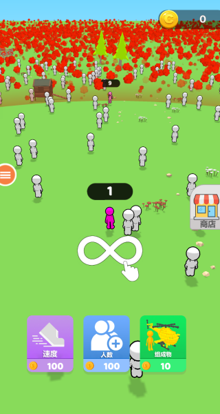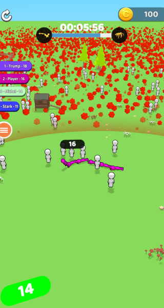 一款益智休闲竞技类游戏,通过各种方法把自己变化成一个巨大的变形动物,收集路上行走散落的小人,不断变大,变得足够大时才能吞噬掉竞技场中的其他的变形动物