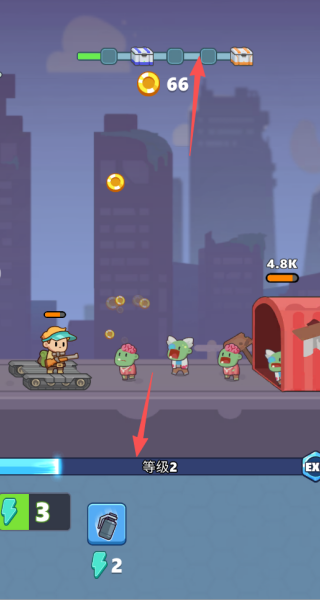 1、直接点击屏幕可以进行射击,击杀僵尸可以获得很多的金币的奖励的。
