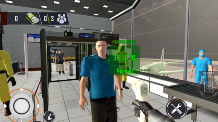 机场隔离区安检模拟器游戏(机组人员检疫值班)是一款逼真的边境安全和感染检测模拟游戏。在游戏中,你将扮演一名机场安保人员,在致命的僵尸病毒爆发期间执行任务。你的职责是检查、扫描并遵守隔离规程,以保护世界免受可能蔓延至各国的僵尸病毒感染。