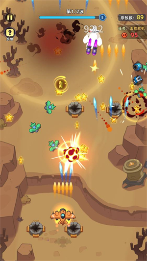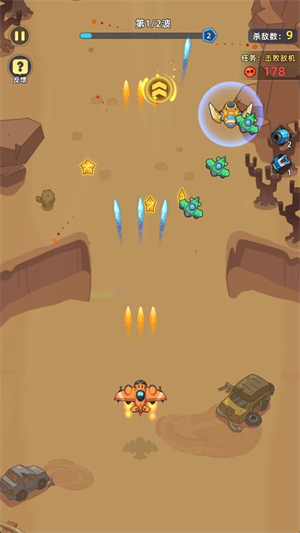 3、正式开始后滑动屏幕可以控制战机移动,战机会自动攻击,当子弹击中敌人后就会造成伤害。