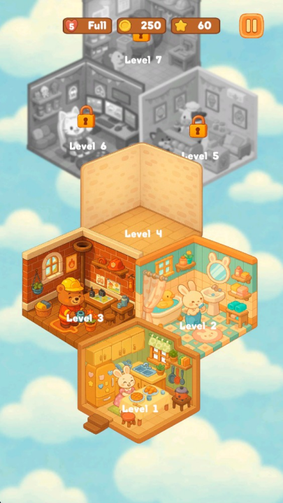 1、核心玩法:游戏会提供各种散乱的房间场景,从卧室、厨房、书房到客厅甚至户外空间。玩家的任务是将散落在各处的物品进行分类、归位,并整齐地摆放到指定或合适的位置。