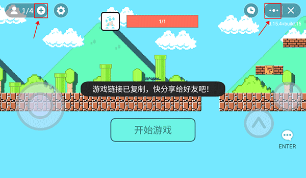 3、点击界面左端“+”号或右端“…”图标可生成专属房间链接,分享给朋友即可实现快速联机。