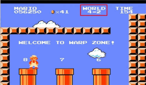5、爬上藤蔓到达4-2关卡尽头之后,会出现3个入口,分别表示第6,第7和第8关,选择8这个入口进去。