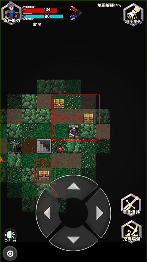 5、注意要判别普通宝箱与宝箱怪,宝箱怪会攻击你,并且实力非常强,而普通宝箱能够直接开箱得到物品;