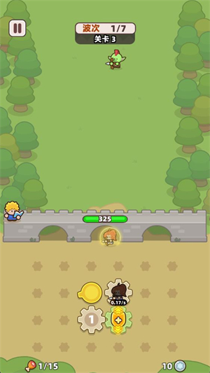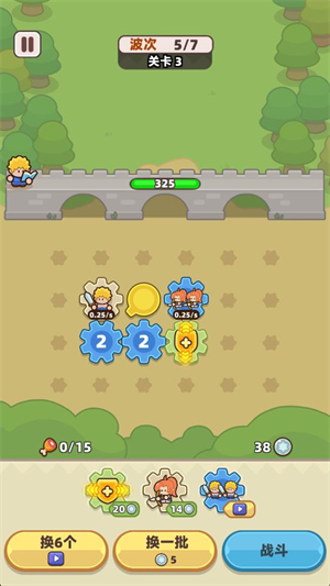 3、点击战斗后齿轮会转动来召唤小兵,小兵会自动消灭出现的怪物敌人。